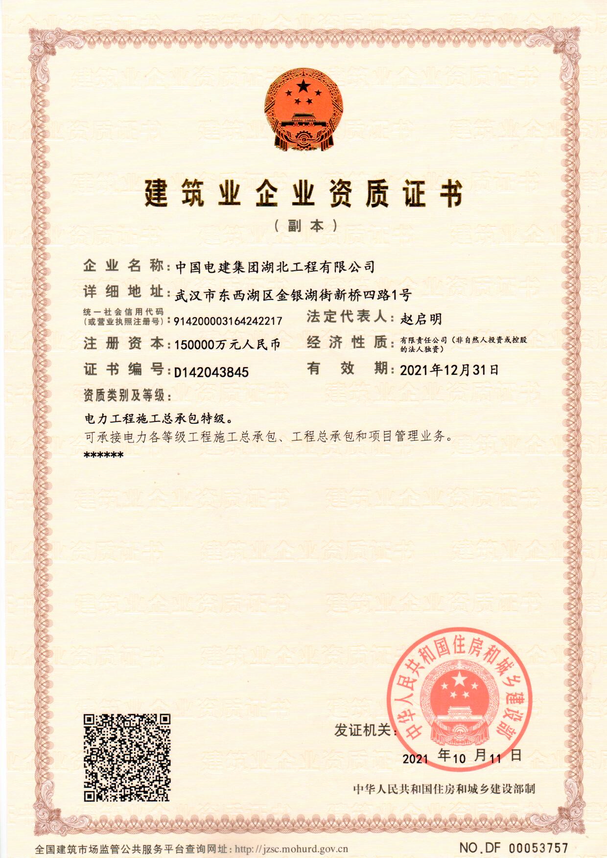 承裝(修、試)類一級(jí)電力設(shè)施許可證